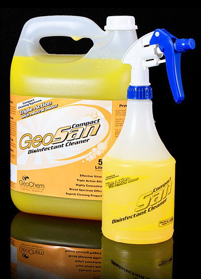 GeoSan is light coloured clear liquid concentrated detergent sanitizer with a neutral odour. Its is a blend of sanitizers, detergents and sequestering agents.